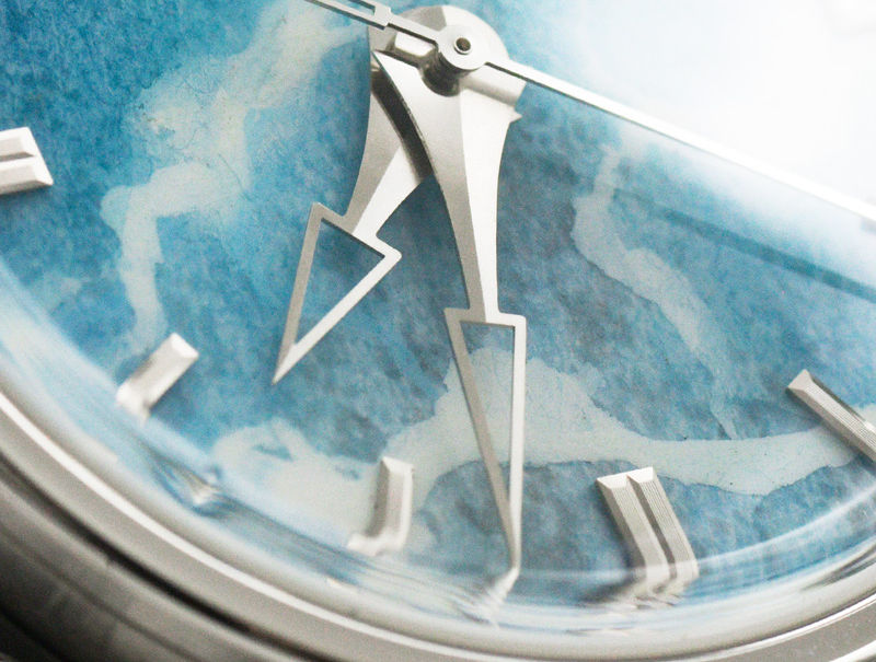 Each dial is then preserved through layers of traditional Hitori enamel, brushed by hand and fired in the kiln. Through repeated cycles of firing and polishing, the surface settles into a deep porcelain like gloss, protecting the delicacy of the Washi while allowing its texture and warmth to remain visible.